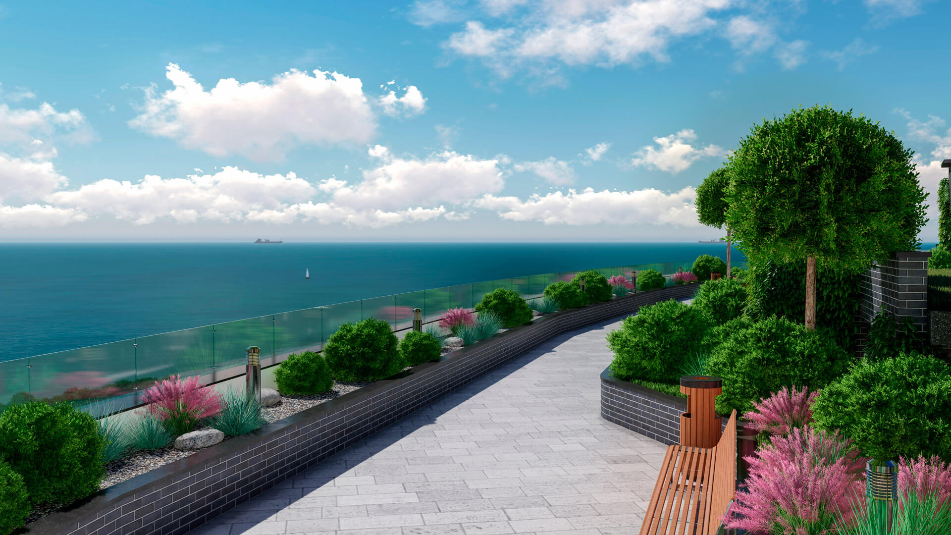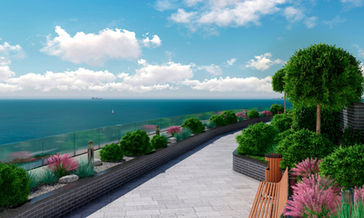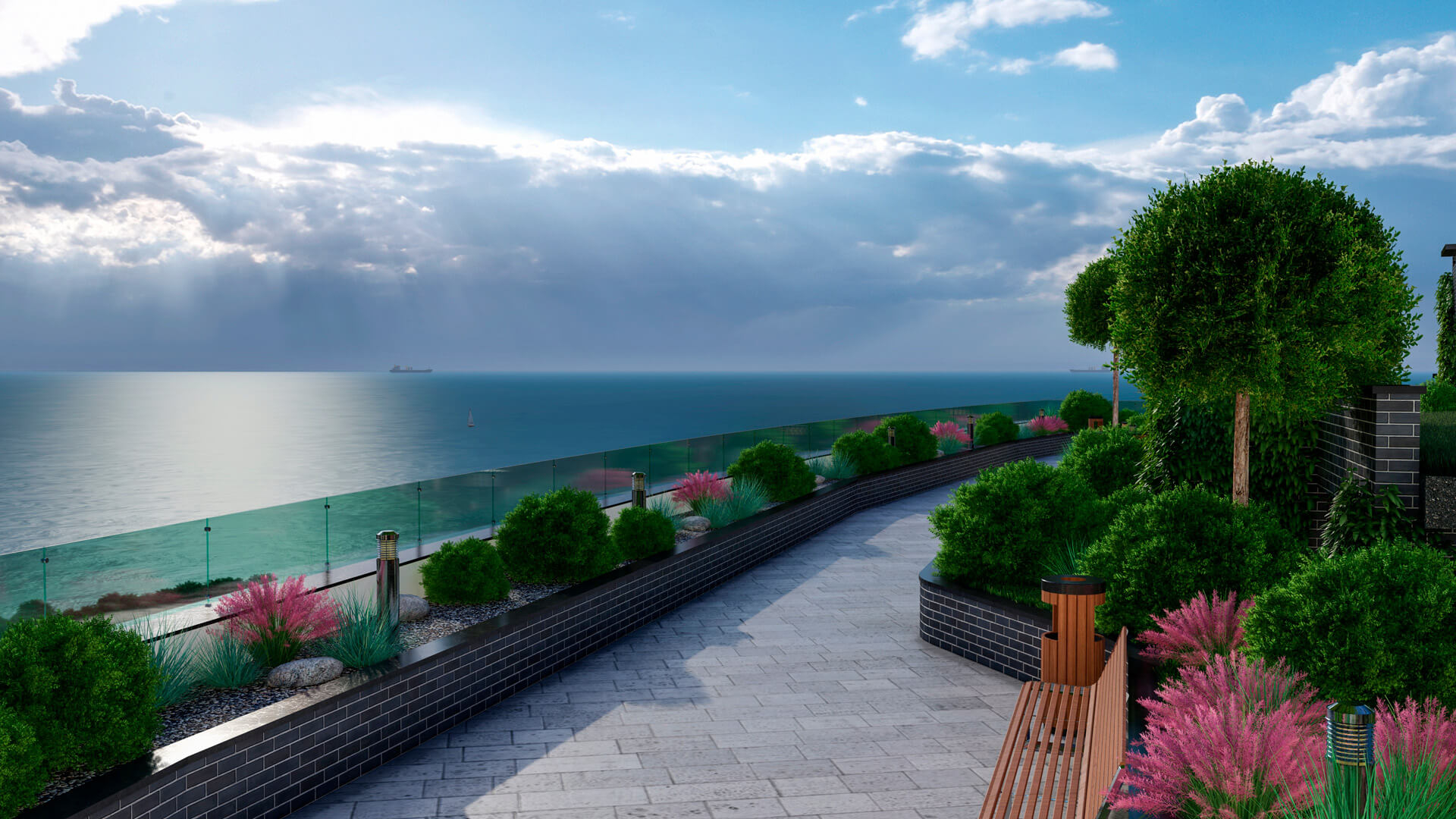 АТМОСФЕРА – дом, расположенный в 5 минутах от моря, при этом, в стороне от шумной Аркадии. Особенность комплекса – террасы на крыше, доступные всем жителям: места для отдыха, с прекрасным панорамным видом на морское побережье и город.