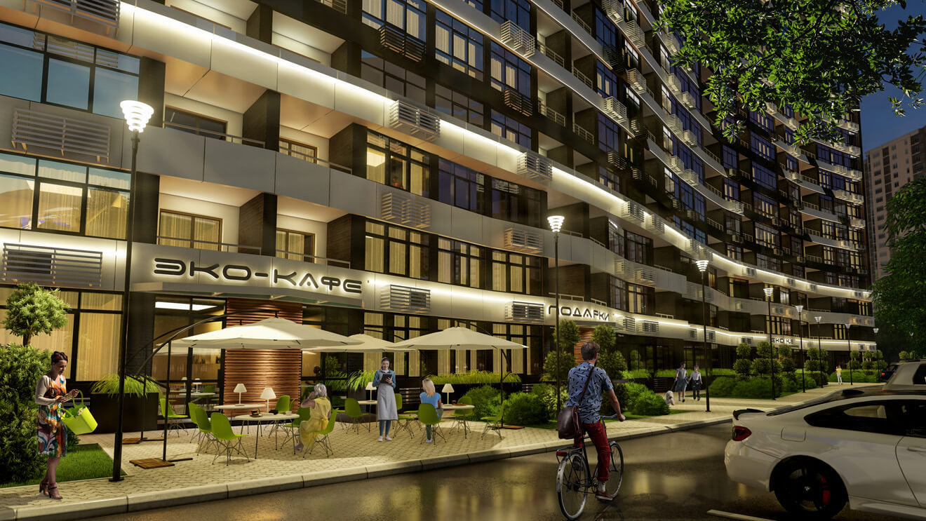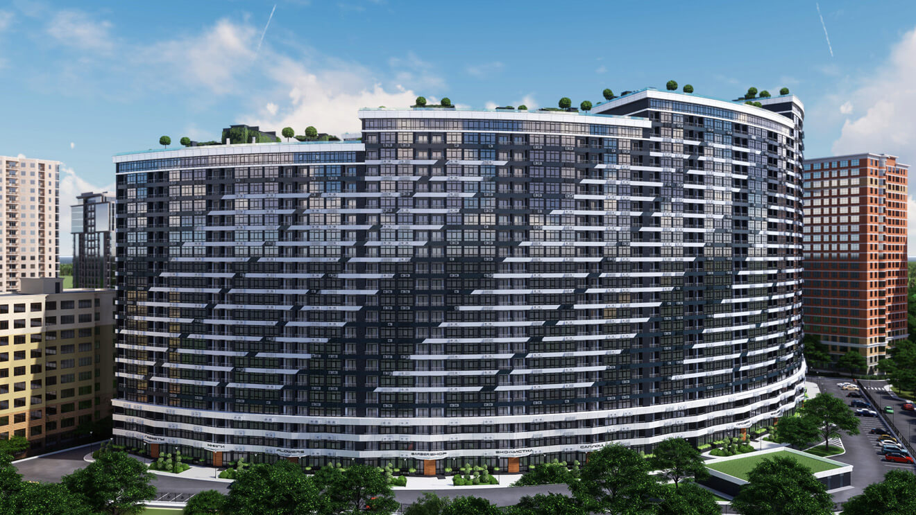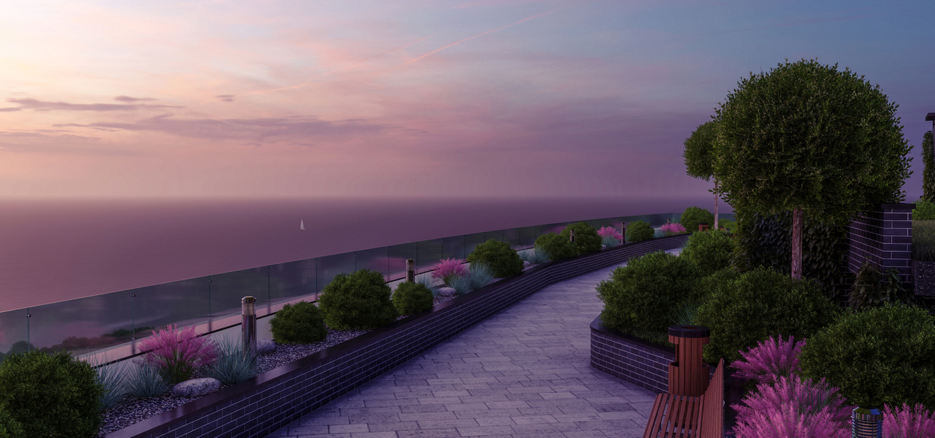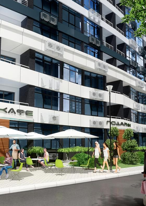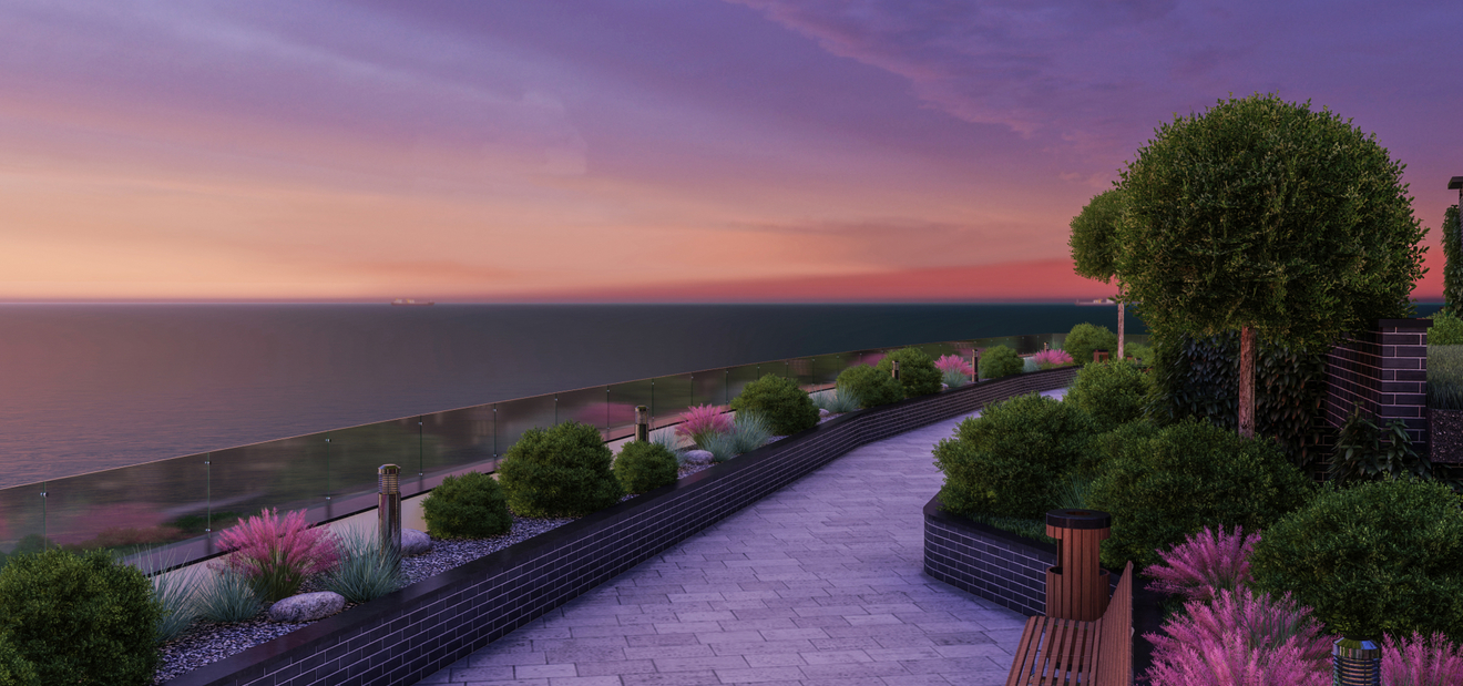 Архитектурное решение проекта АТМОСФЕРА учитывает прибрежное расположение жилого комплекса. Фасад здания призван давать жителям оптимальное количество солнечного света и максимальное – свежего морского воздуха. А форма дома идеально создаёт локальный внутренний двор. Она напоминает океанский лайнер и отражает философию проекта: скользить по жизни, как по морской глади.